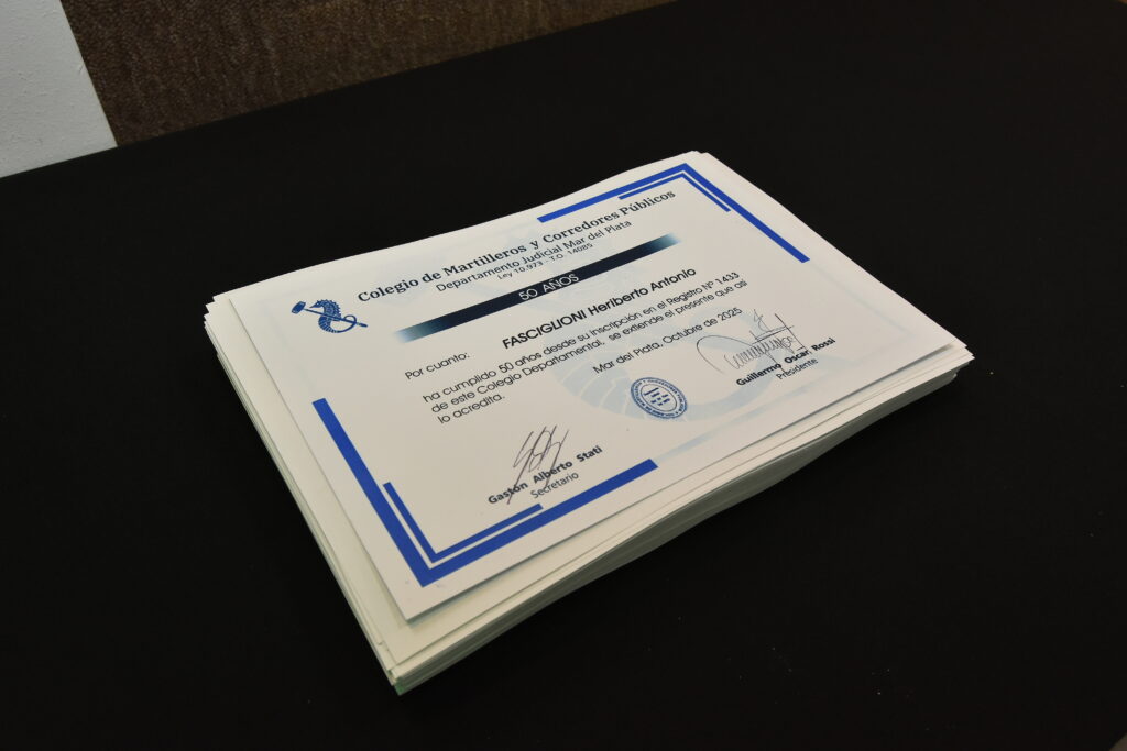 Durante el acto central se entregaron distinciones a los colegas que cumplieron 10, 15, 20, 25, 30, 35, 40, 45 y 50 años de ejercicio profesional, reconociendo su trayectoria, compromiso y el ejemplo que representan para las nuevas generaciones.