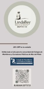 Les comunicamos un nuevo convenio con LINDA BAY – Beach&Resort. Ahora podrán acceder a un descuento del 20% en su estadía. Escanear el código QR para más información ¡Seguimos sumando beneficios para nuestros colegiados!