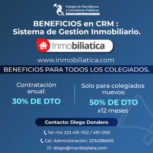 - Sesiones grupales: 25% OFF para martilleros y sus equipos de trabajo.